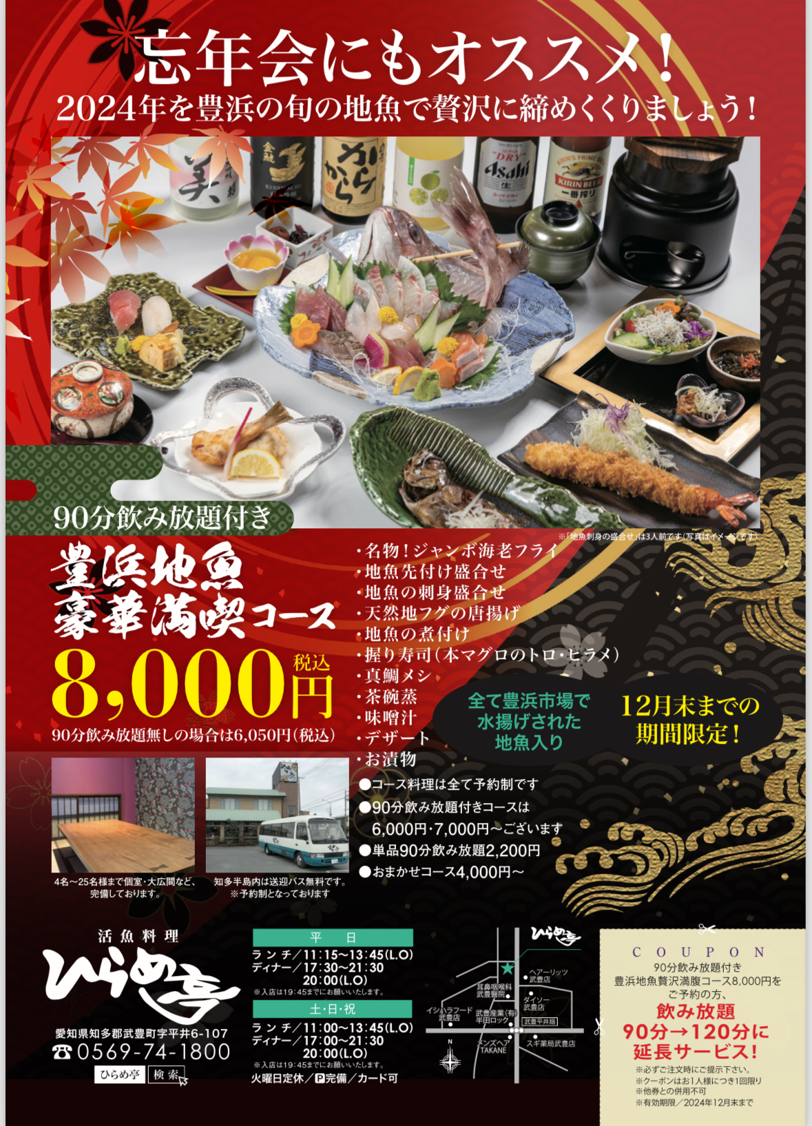 『豊浜地魚 豪華満喫コース!90分飲み放題付き』